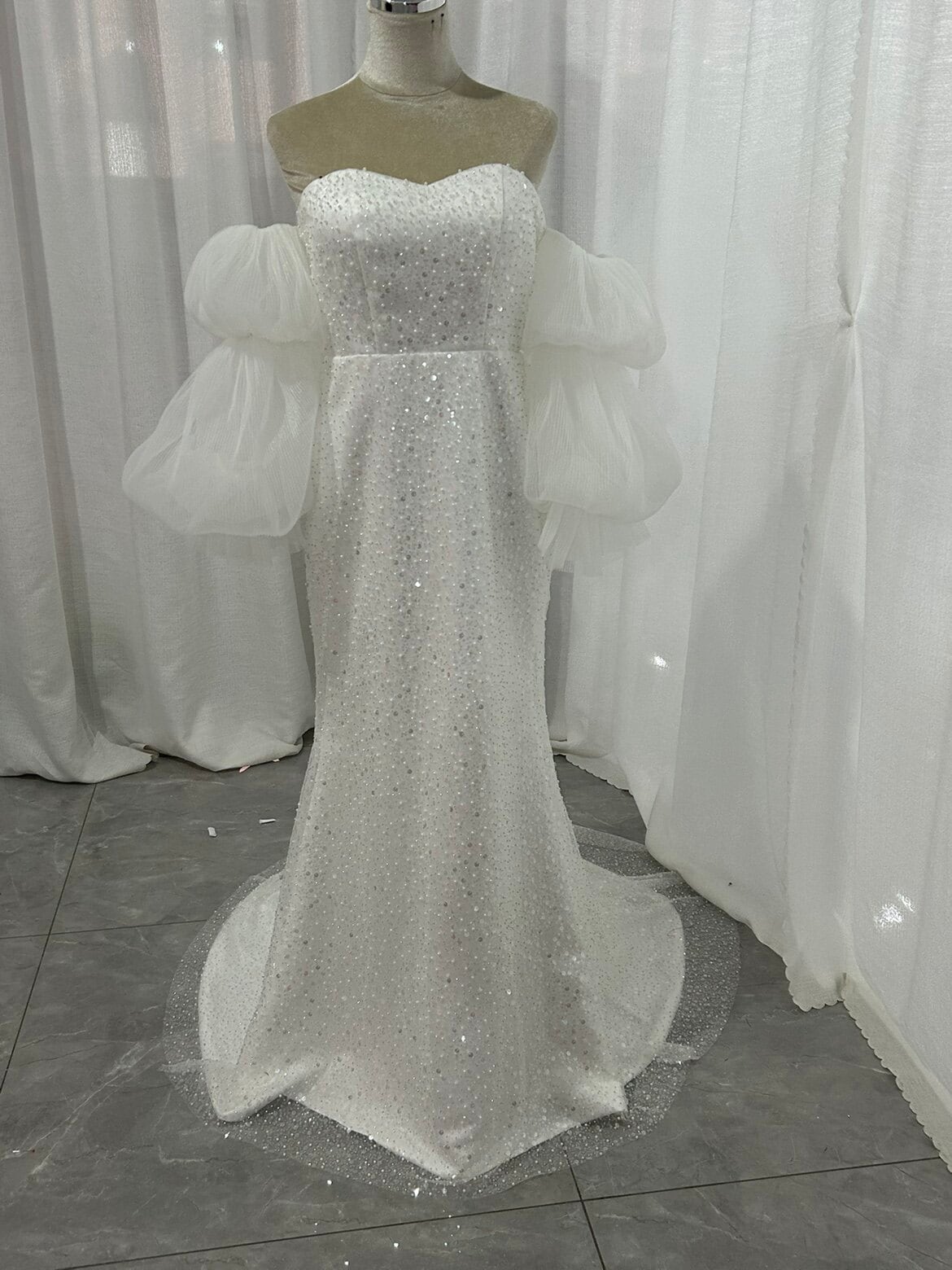 8. キラキラドレスはラメが少し落ちやすいですが、キラキラ感はそのまま!ご安心ください 。キラキラドレスが到着の際、掃除しやすいところにご開封、ご試着をお願いします。