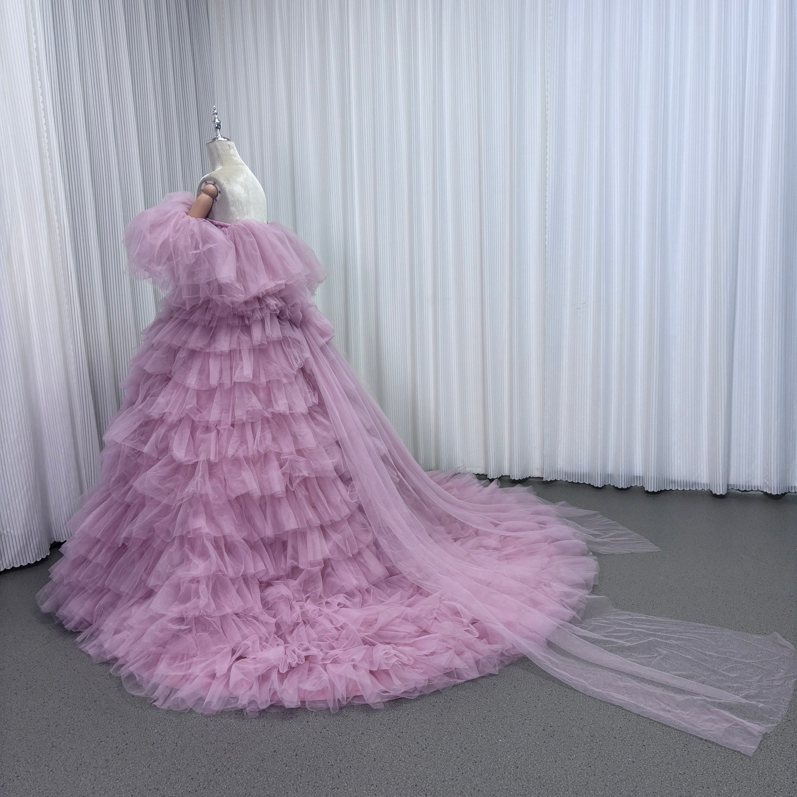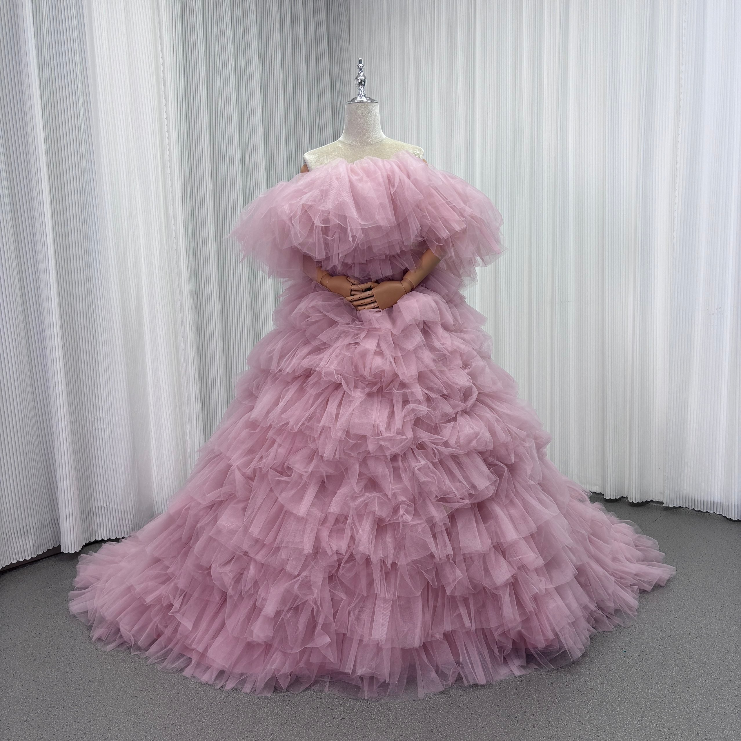 カラードレス オフショルダー ピンク ふっくら柔らかなバックリボン もこもこドレス チュールドレス 結婚式/披露宴