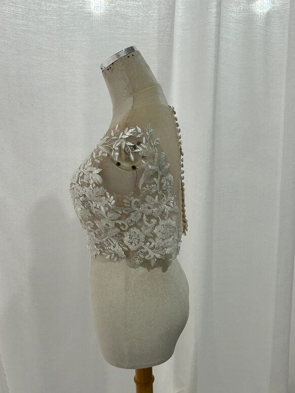 ボレロ 可憐な花刺繍のトップス 短袖 ハンドメイド くるみボタン 結婚式
