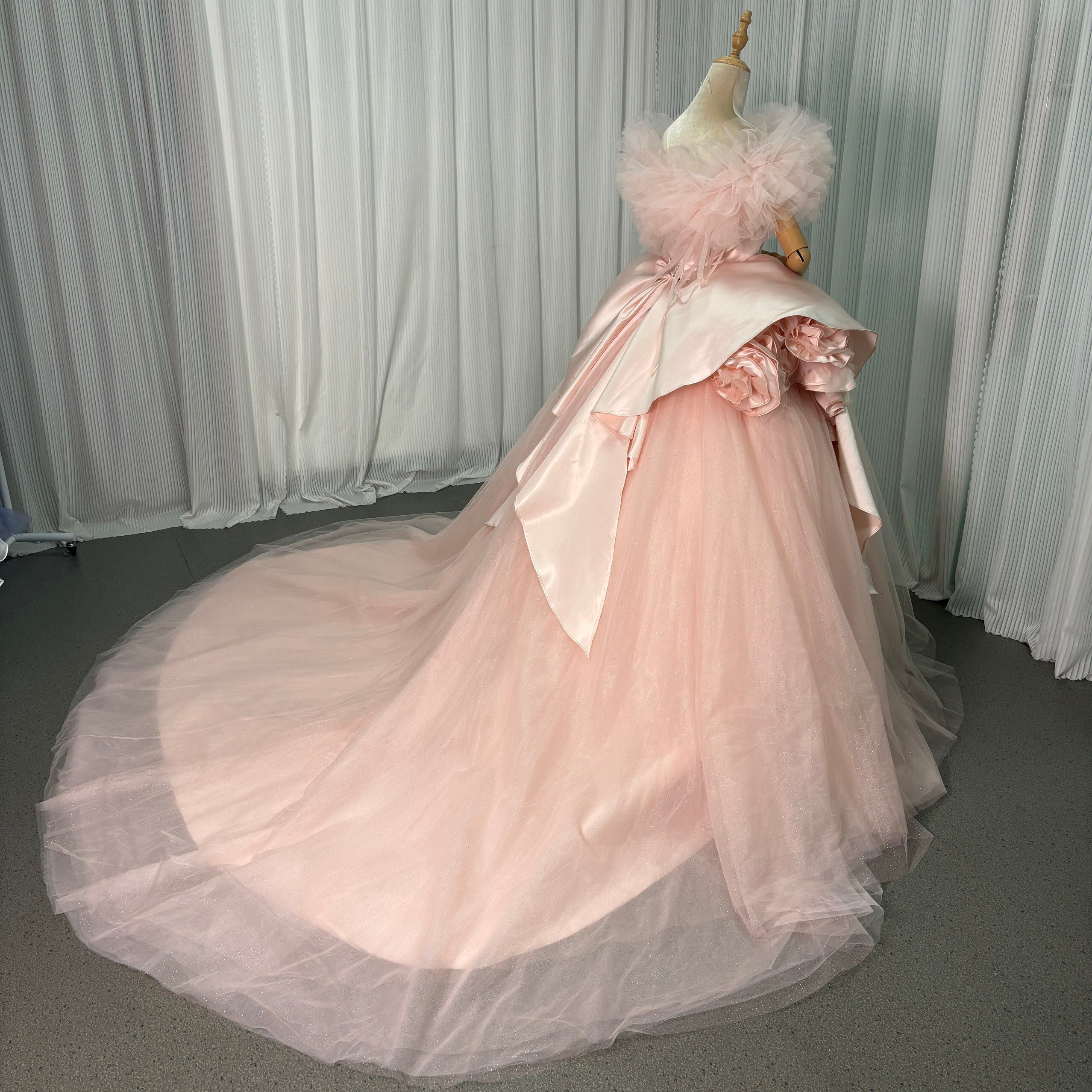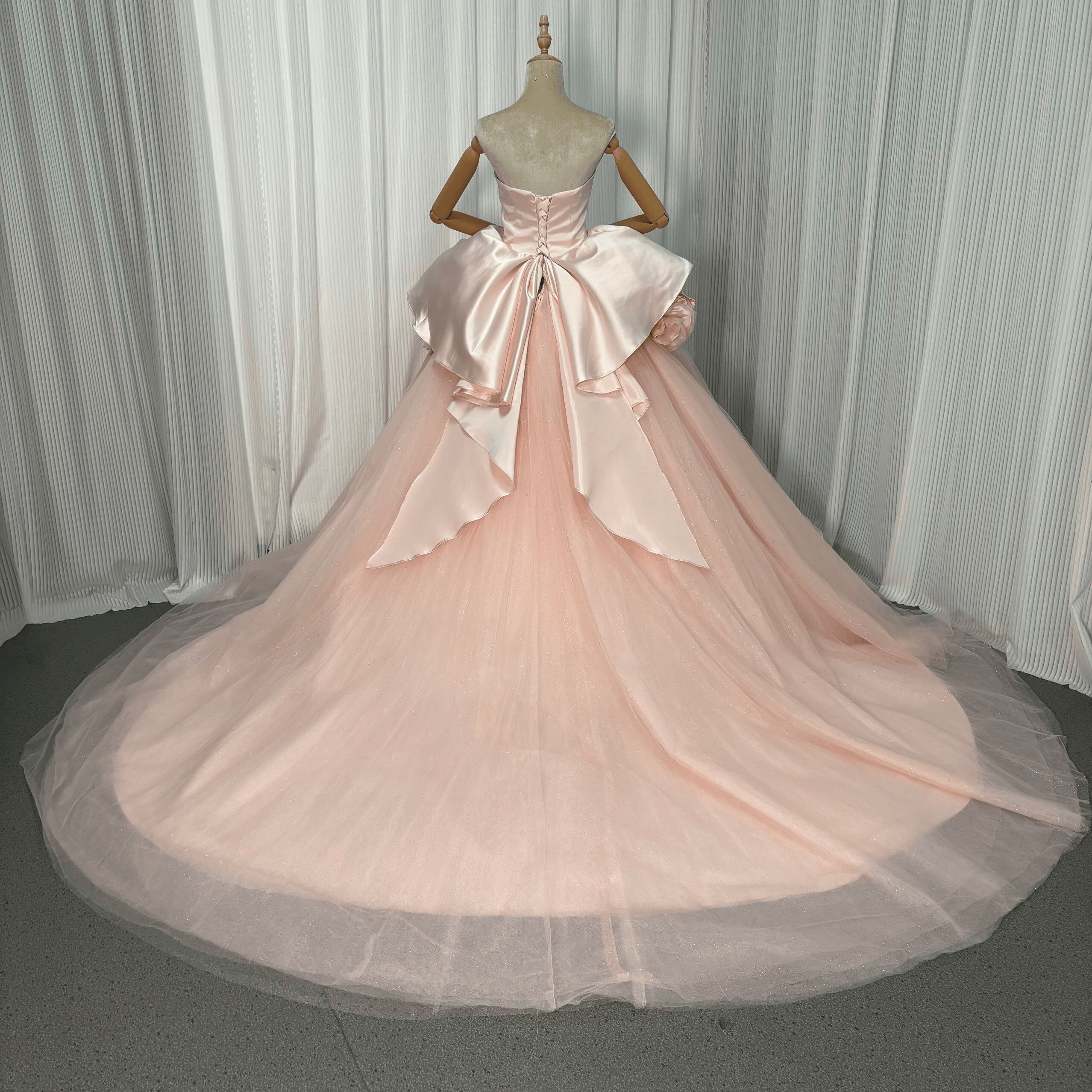 カラードレス パウダーピンク ピンク オフショルダー キラキラグリッターチュール プリンセスライン ブライダル 花嫁