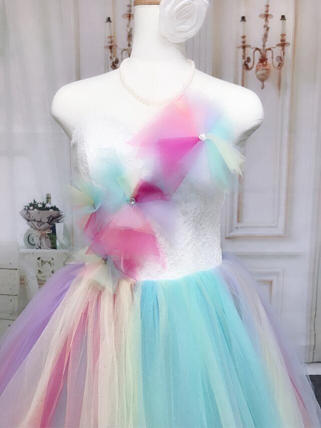 レインボーカラーウェディングドレス、オーダーメイドドレス、カラードレス