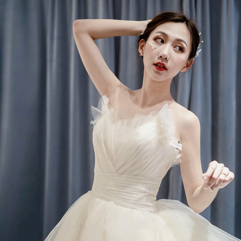 【お買得パニエ+ベール+グローブ無料】ウエディングドレス ホワイトソフトチュール プリンセス花嫁