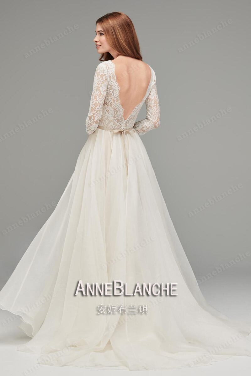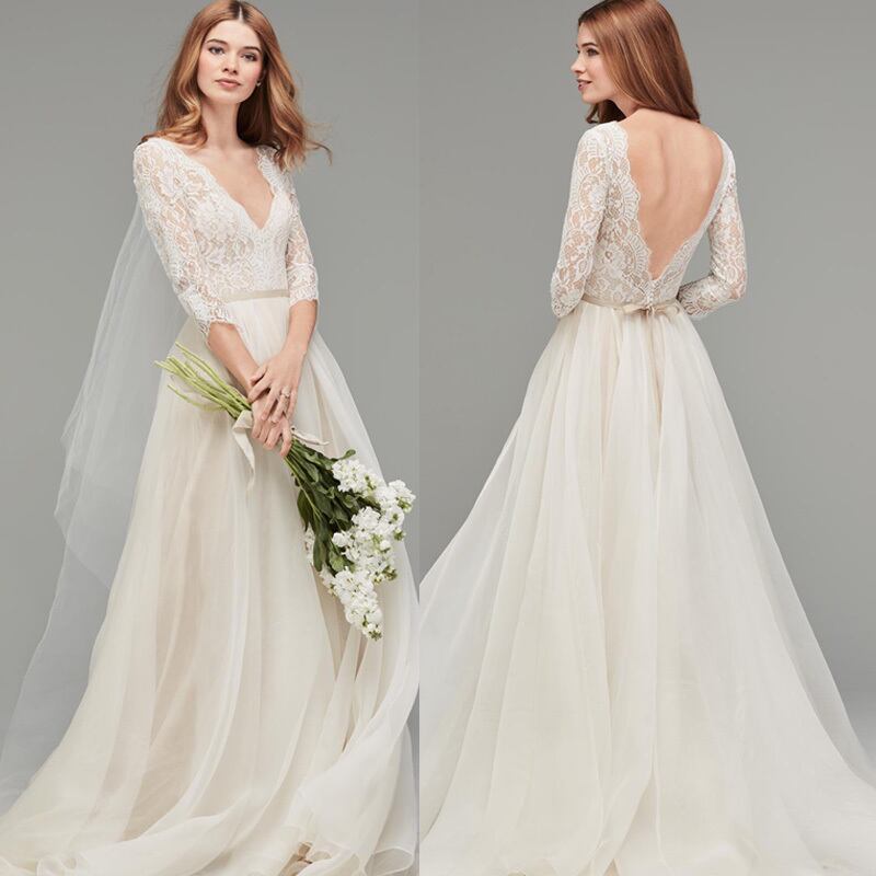 ウエディングドレス Vネックドレス タンクトップ 七分袖丈 トレーン ホワイト