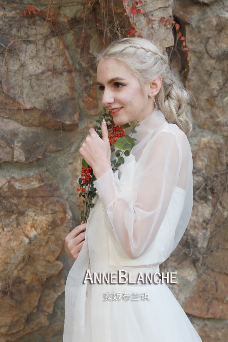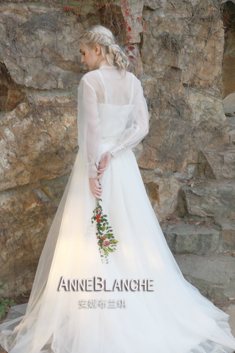 ウエディングドレス 上質オーガンジー 長袖 リボン パーティドレス プリンセスライン