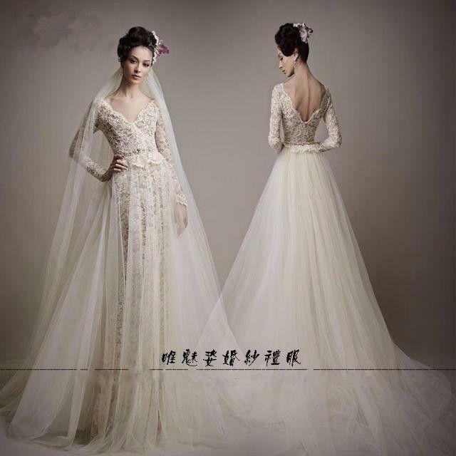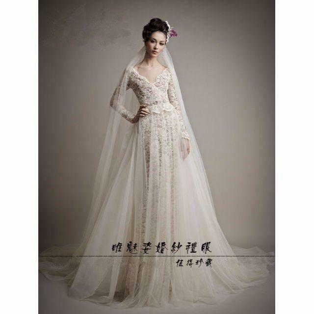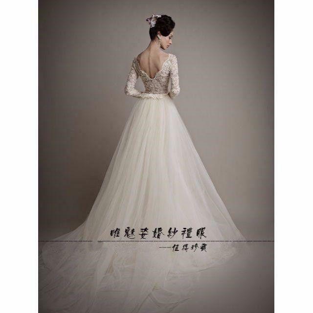 ウエディングドレス レース 長袖 タンクトップ Vネック 結婚式 ピアノ演奏会/音楽会/発表会など 優雅なシルエット