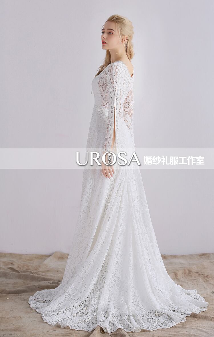 ウエディングドレス レース 短トレーン 長袖 クラシカル エレガント 結婚式/披露宴 発表会など