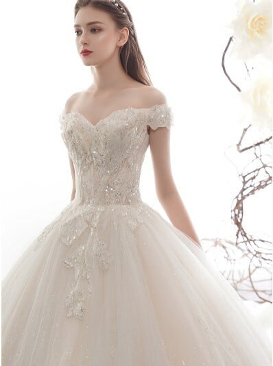 ホワイト ソフトチュール オフショル エンパイアライン 高品質! ウエディングドレス