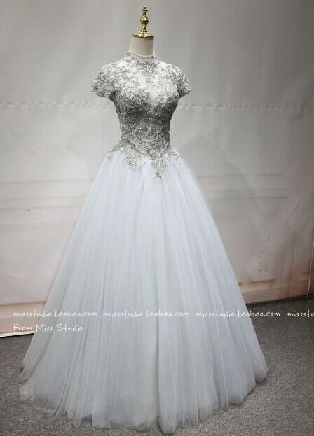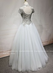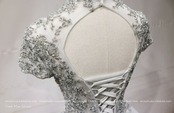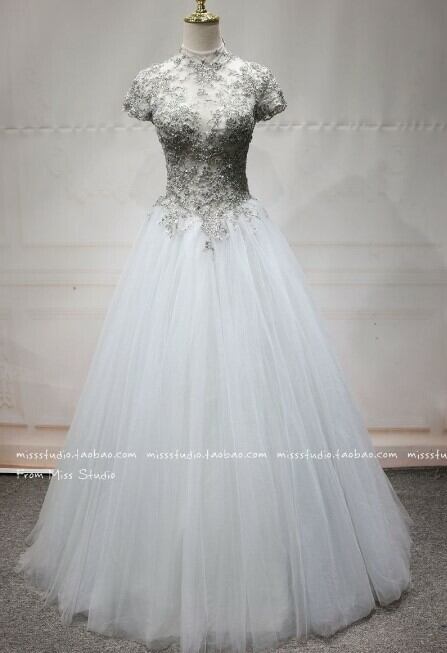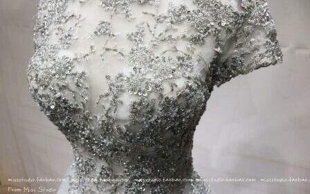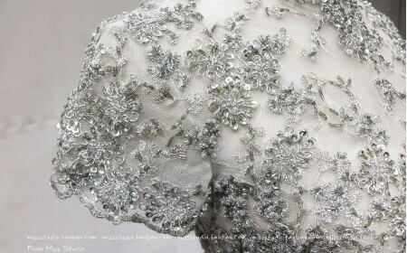 高品質!イブニングドレス シルバー ソフトチュール ロング 短袖 エレガント 細見えシルエット クラシカル