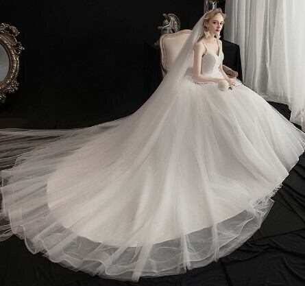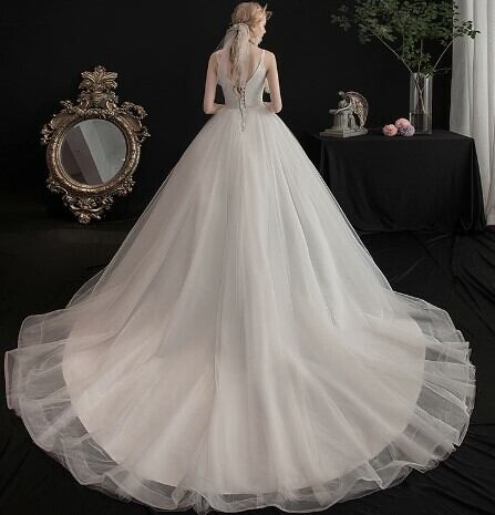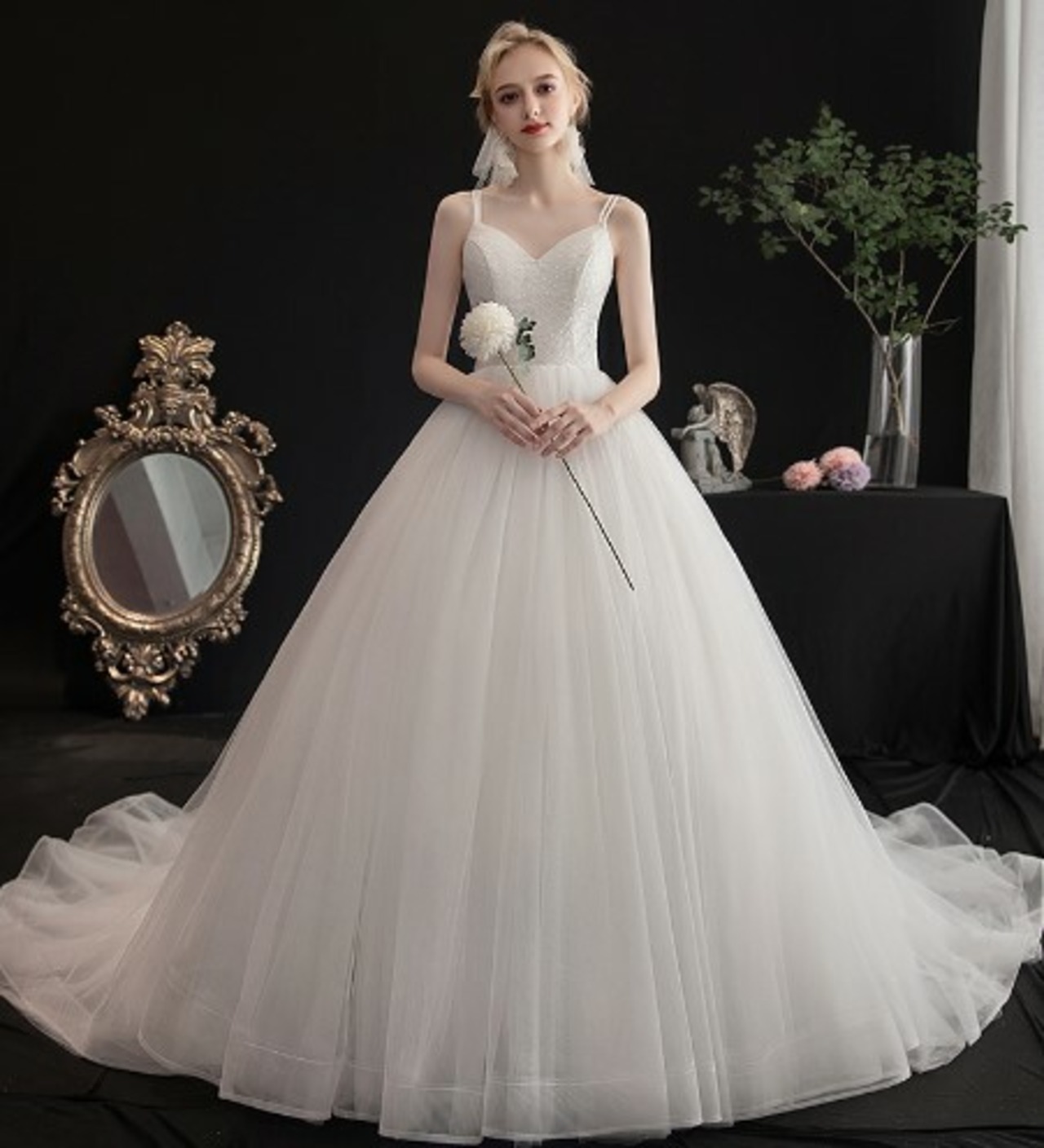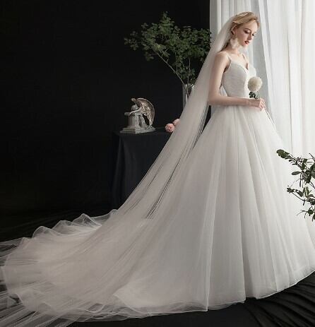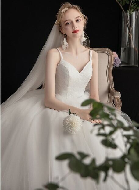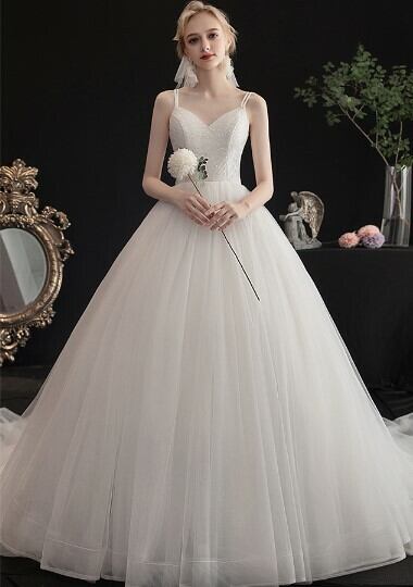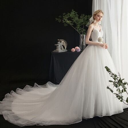 高品質! ウエディングドレス ホワイト ソフトチュール キャミソール ミニトレーン/短トレーン エレガント 編み上げ 細見えシルエット