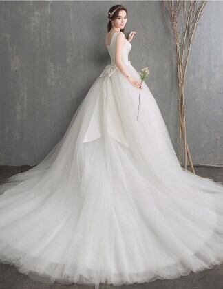 美品! ウエディングドレス ホワイト ロングトレーン エレガント 優雅なシルエット 細見えシルエット
