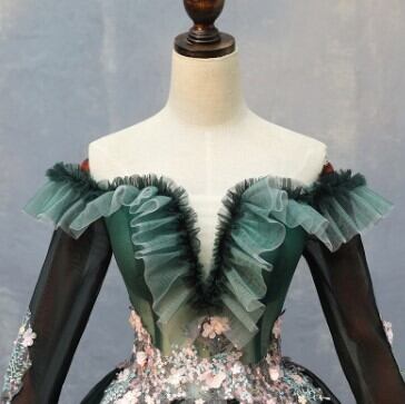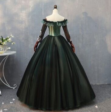 高品質! カラードレス 深めな緑 オフショルダー ロング 長袖 エレガント 細見えシルエット