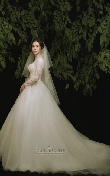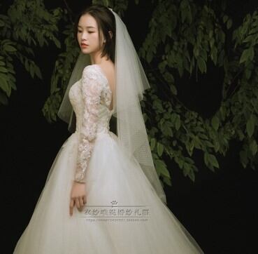 高品質! ウエディングドレス ロングトレーン 繊細レース 長袖 エレガント 細見えシルエット