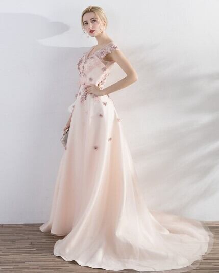 美品! イブニングドレス ミニトレーン/短トレーン Vネック エレガント 細見えシルエット