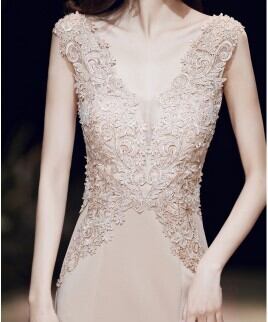 上品! イブニングドレス マーメイドライン 繊細レース 優雅なシルエット セクシー 細見えシルエット