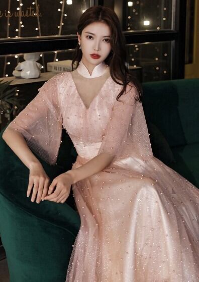 美品! パーティードレス ピンク Aライン エレガント 可愛い 細見えシルエット