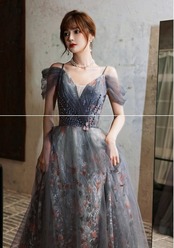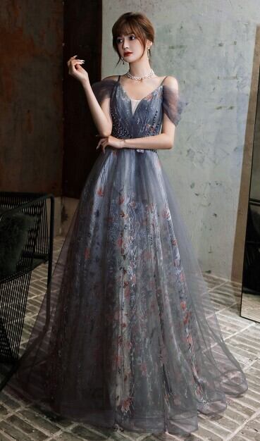 上品! パーティードレス グレー キャミソール Vネックドレス エレガント 編み上げ 細見えシルエット