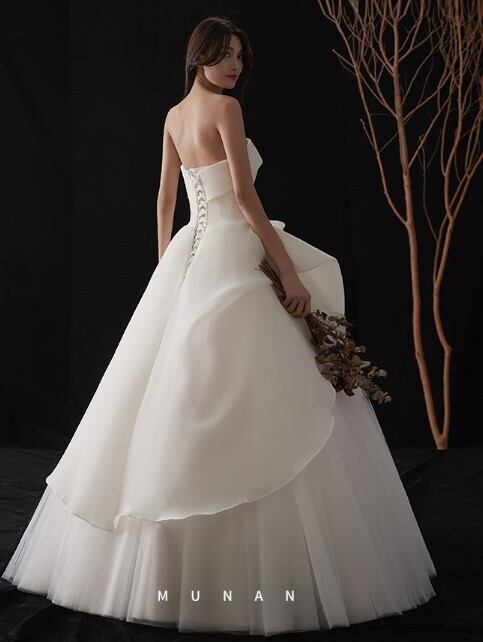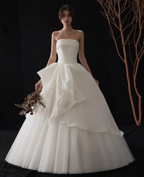 上品! ウエディングドレス アイボリー ベアトップ ロング 花嫁/ウェディングドレス/ブライズメイド/結婚式/披露宴/