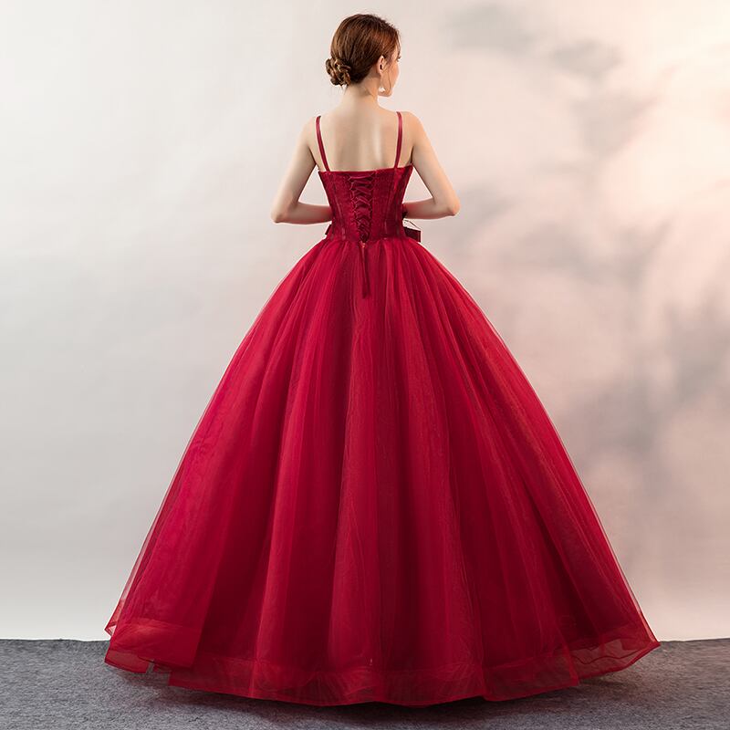 上品! パーティードレス ワインレッド キャミソール プリンセスライン 人気上昇 クラシカル 華やか フレアスカート