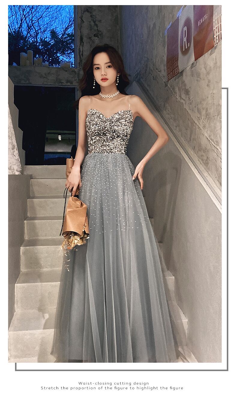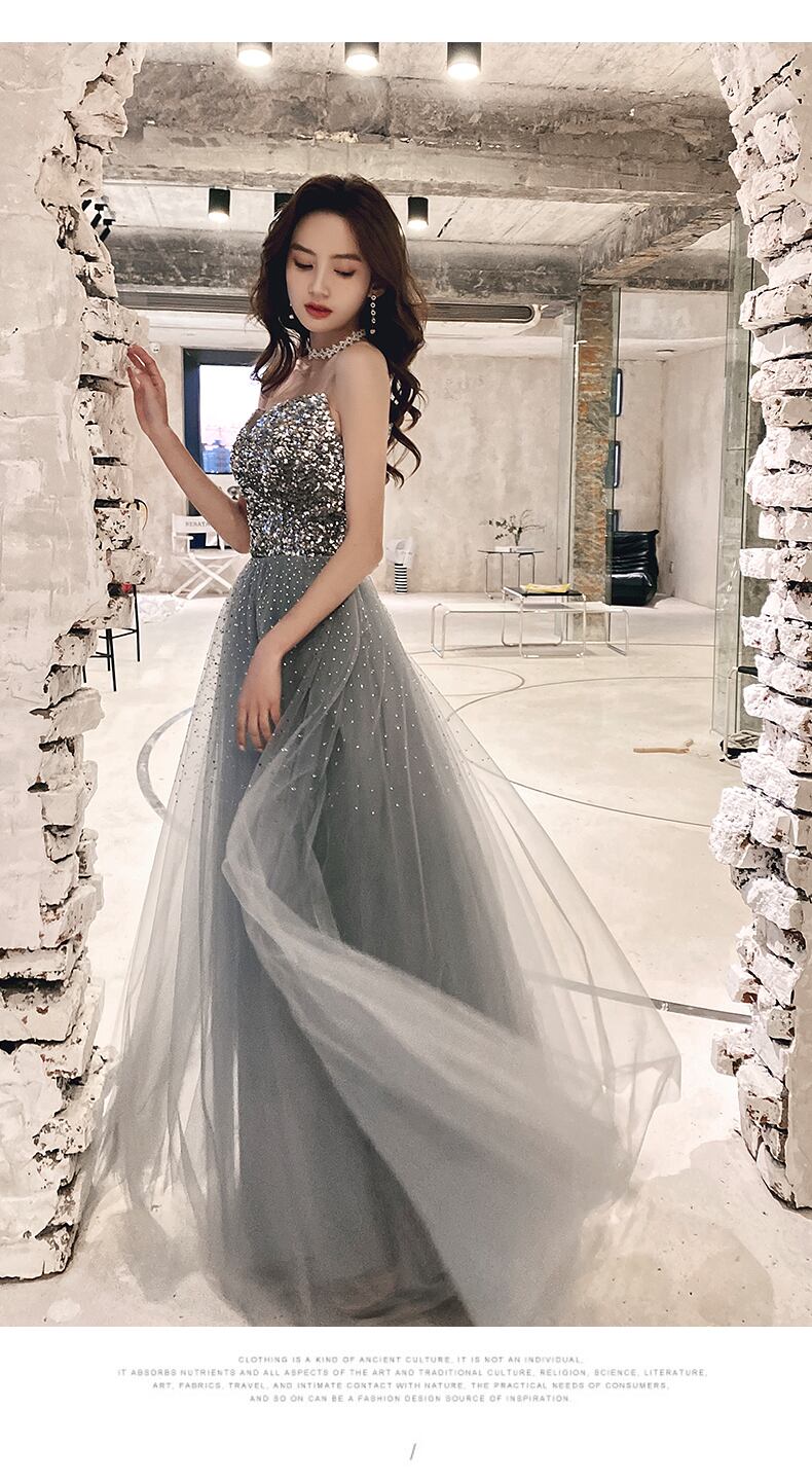 上品! フパーティードレス グレー ベアトップ プリンセスライン エレガント 華やか 抜群 のおしゃれ見え
