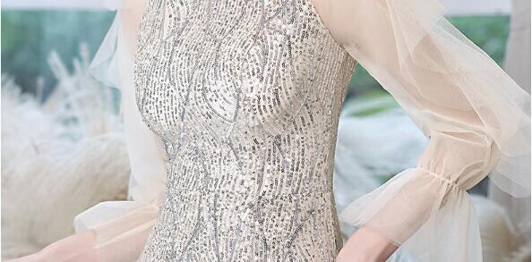 上品!パーティードレス ふわふわ袖 スパンデックス マーメイドライン ロングドレス クラシカル エレガント シアーな美しさ