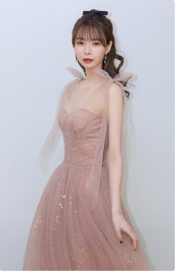 上品!パーティードレス大人気上昇 薄ピンク キラキラチュール プリンセスライン 憧れのドレス エレガント クラシカル シアーな美しさ