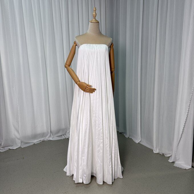 パーティードレス プリーツドレス ベアトップ 床付く シルクタフタ オフホワイト 披露宴/結婚式